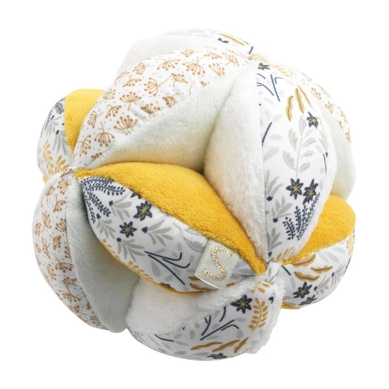 La balle sensorielle Promenons-nous de Sauthon est composée de coussinets rembourrés, espacés, entre lesquels votre jeune enfant peut aisément glisser ses doigts. Une fois son jouet en main, il découvre les textures variées, les teintes naturelles douces associées à d’autres plus contrastées, les imprimés végétaux magnifiques…
