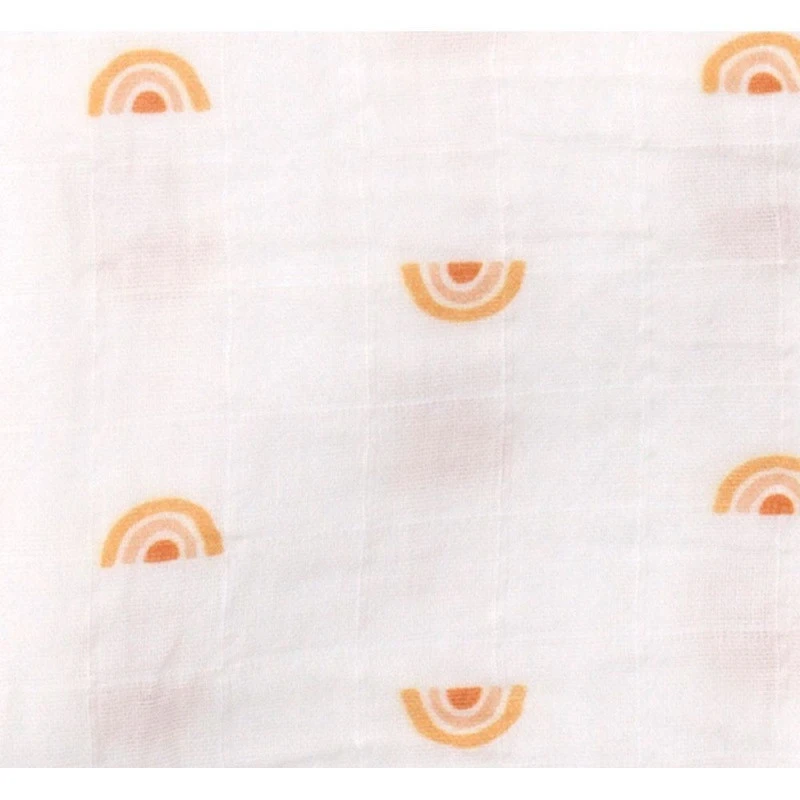 Ces langes ravissants proposent 3 imprimés distincts, coordonnés au reste de la collection Sunlight de Sauthon : l’un est parsemé d’arc-en-ciel multicolores, le second est écru avec un imprimé orangé, et le dernier est uni orange colorado.
