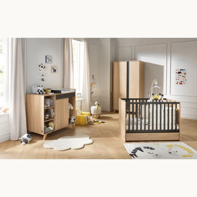 Fonctionnelle, elle offre un grand espace de rangement (tablette, penderie, étagère, tiroir) pour avoir tout le nécessaire de bébé à portée de main.