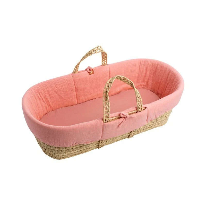 Utilisable dès votre retour de la maternité, son panier en fibres naturelles de palmier est fourni avec un habillage et une housse de matelas en coton, ainsi que d’un matelas bien confortable pour dormir sereinement à côté de maman.