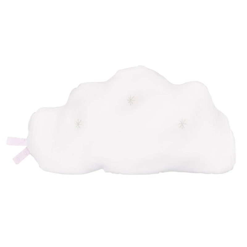 Ce coussin du thème Lily poudrée de Sauthon s’intégrera parfaitement dans l’univers de bébé. Dans les tons de blanc et rose poudré, il prend la forme d’un joli petit nuage pour allier déco et confort ! Il sera idéal pour créer un coin douillet où votre enfant pourra lire, jouer ou se reposer. Entièrement en mousseline de coton, il apportera douceur et sérénité à la décoration de la chambre. Voilà une belle idée de cadeau à inscrire sur la liste de naissance !
