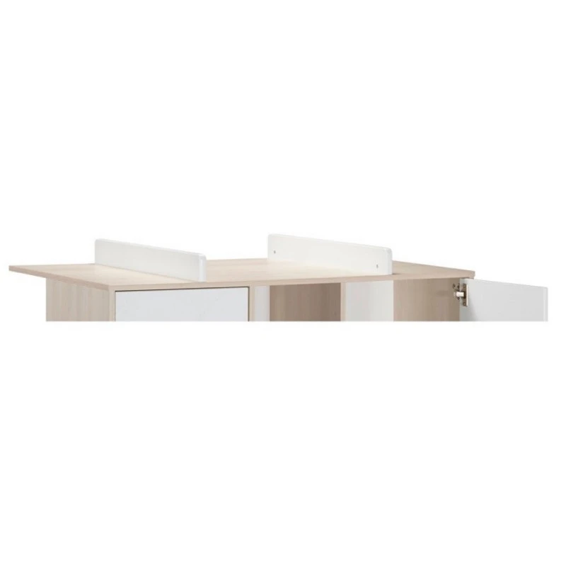 Transformez votre commode Happy en meuble à langer en fixant simplement le dispositif à langer Sauthon sur le dessus. Spacieux et sécurisé, vous pourrez grâce au dispositif à langer Happy vous occuper de votre tout petit en toute sérénité. Pratique, le dispositif à langer Happy permet de garder de l’espace sur la commode afin de garder les accessoires de bébé à portée de main. Ce dispositif à langer doit être fixé au mur afin d’utiliser le produit en toute sécurité grâce à la sangle fournie avec la commode. Vous pouvez l’utiliser jusqu’à ce que votre enfant atteigne 15kg maximum.