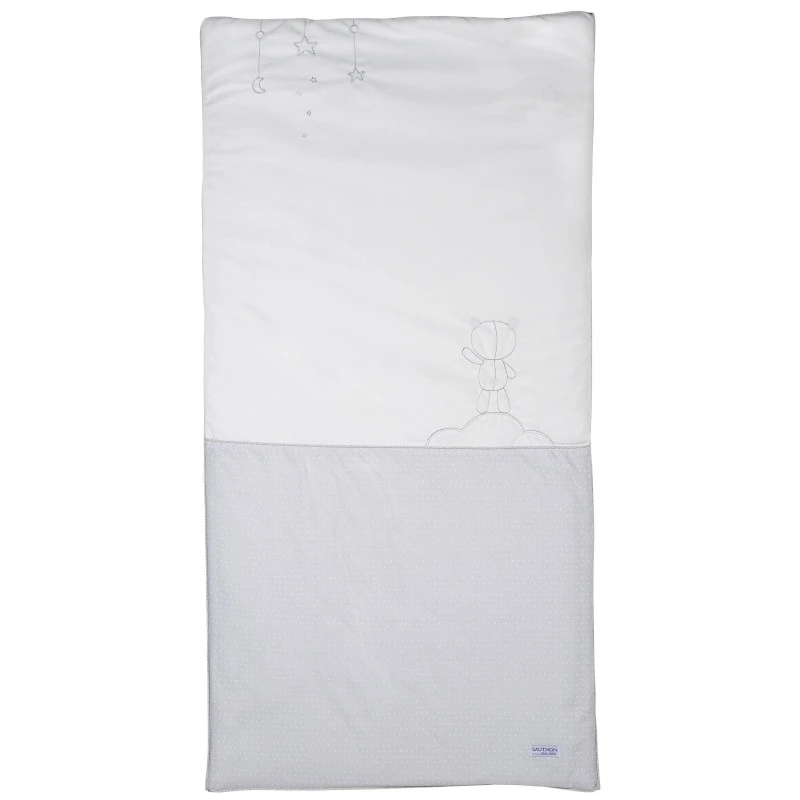 Bien installé sous son édredon 70×140 assorti à la collection Céleste par Sauthon, bébé sera enveloppé dans un petit cocon de chaleur, prêt à passer une bonne et douce nuit aux pays des rêves.