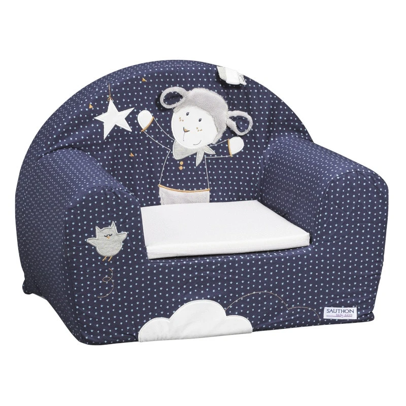 Sauthon vous propose des articles adorables pour une chambre 100% Merlin. Afin d’en peaufiner la décoration, voici un rideau à pattes. Blanc, gris et bleu marine, il dégage une sensation d’apaisement et de douceur. Bébé pourra y observer Merlin le mouton chassant les étoiles avec son copain hibou : idéal pour décorer la chambre mais aussi stimuler l’imagination de votre enfant. Ce rideau à pattes imaginé par Sauthon est une idée originale à inscrire sur la liste de naissance. Il est certain qu’il va faire des heureux !