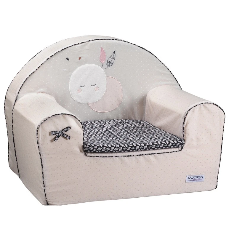 Le fauteuil club assorti à la collection Miss Chipie par Sauthon rendra bébé fou de joie : enfin il aura son propre fauteuil et pourra faire comme les grands ! Confortablement installé dans ce fauteuil rembourré, spécialement adapté à sa taille, que ce soit pour lire une histoire, jouer ou se reposer, votre enfant y sera parfaitement installé. Dans une dominante de rose avec de jolis petits liserés et un coussin fleuri, on y retrouve mademoiselle la lune, toute mignonne avec ses petites pommettes roses et ses plumes sur la tête, vraiment craquante ! Un petit nœud fleuri viendra parfaire la décoration romantique de ce fauteuil ! Il se fondra parfaitement à la chambre de bébé en apportant La touche finale à sa décoration.