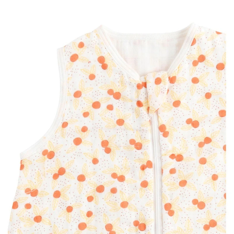 Vous retrouverez sur la gigoteuse naissance lange en coton bio Sauthon Esmée, un superbe imprimé dans les tons d’écru, rose et orangé. En effet, elle appartient à une collection complète qui compte tout ce qu’il faut pour créer un univers harmonieux et chaleureux à votre tout-petit : tour de lit, couvertures, mobile, doudous, matelas à langer, tapis, panières de rangement… Découvrez-les vite, vous y trouverez de bonnes idées de cadeaux à suggérer à vos proches sur votre liste de naissance !