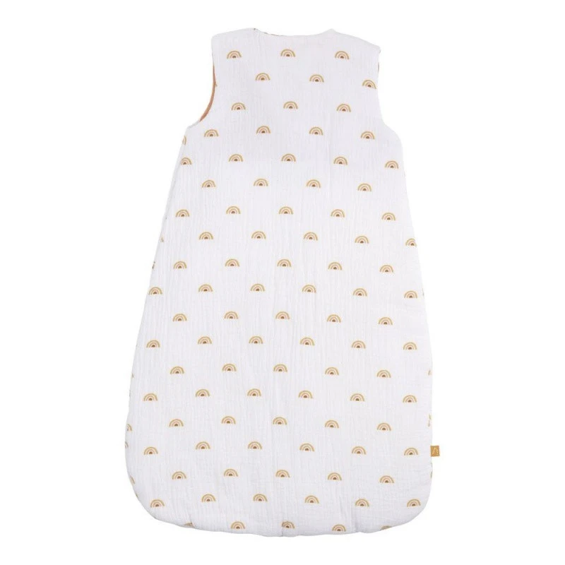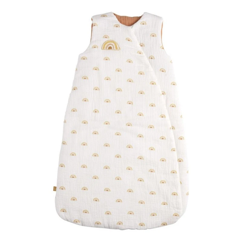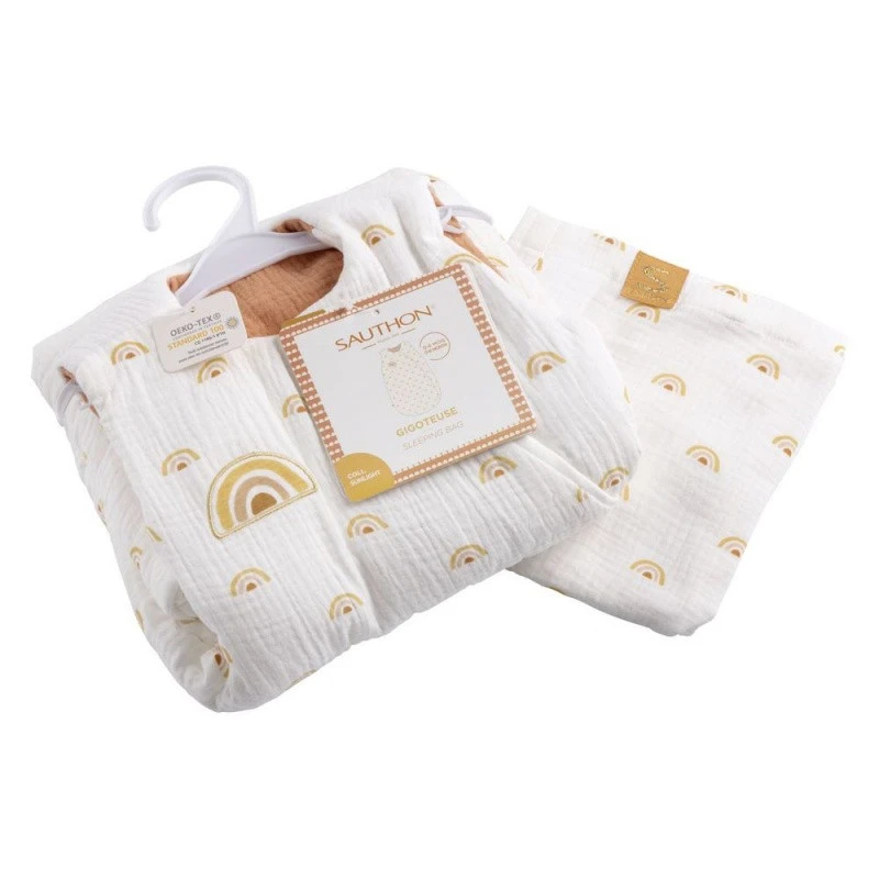 Cette jolie gigoteuse de la collection Sunlight est destinée aux enfants entre 0 et 6 mois. La marque Sauthon a choisi de lui donner un look tendance en optant pour des teintes écrues et orangées et pour un superbe imprimé où figurent d’adorables arc-en-ciel….