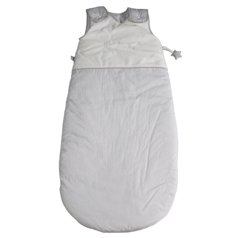La gigoteuse 4-24 mois par Sauthon est idéale pour garder bébé au chaud pendant son sommeil sans jamais se découvrir. Sans manche, elle permet de laisser circuler l’air tout en apportant douceur et chaleur à l’enfant. L’ouverture par bouton pression sur les épaules ainsi que la fermeture éclair sur le côté de la gigoteuse facilitent l’installation de bébé. L’utilisation de couverture ou de couette étant déconseillée jusqu’à l’âge de 18 mois, la gigoteuse est la solution idéale. Dans les tons blanc et gris étoilé, on y retrouve mademoiselle la lune entourée de plein de petites étoiles ! Un beau cadeau très pratique pour passer un hiver bien au chaud !