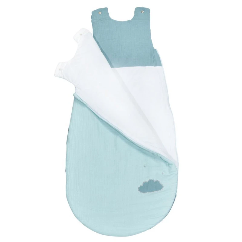 La gigoteuse 6-24 mois Sauthon est idéale pour garder bébé au chaud pendant son sommeil sans jamais se découvrir. Sans manche, elle permet de laisser circuler l’air tout en apportant douceur et chaleur à l’enfant. L’ouverture par bouton pression sur les épaules ainsi que la fermeture éclair sur le côté de la gigoteuse facilitent l’installation de bébé. L’utilisation de couverture ou de couette étant déconseillée jusqu’à l’âge de 18 mois, la gigoteuse est la solution idéale. Dans les tons blanc et bleu menthe, elle est décorée par un joli petit nuage ! Vous serez séduit par la douceur de la mousseline de coton gaufré, la finesse des broderies et la sobriété du dessin de cette gigoteuse hiver. Une collection tout en raffinement et en simplicité qui offrira à bébé un cocon de sérénité dès ses premiers instants. Un beau cadeau très pratique pour passer un hiver bien au chaud !