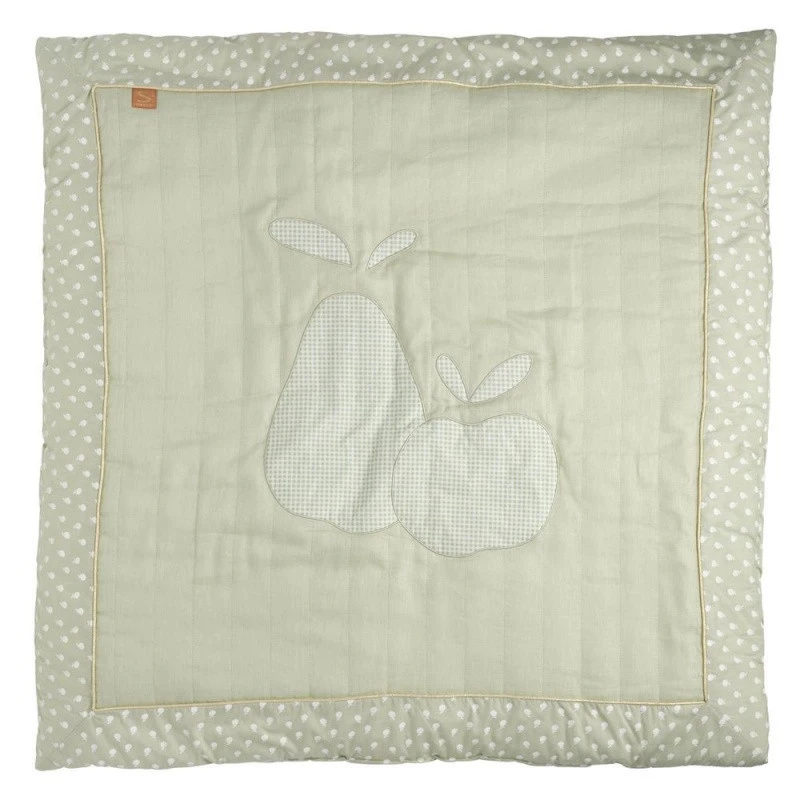 Découvrez l’adorable tapis 1 x 1 m, assorti à la collection Botanica par Sauthon ! Dans les tons de vert avec un entourage décoré d’un imprimé recouvert de pommes et de poires, on y retrouve une belle broderie fruitée, qui séduit autant les petits que les grands !