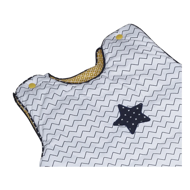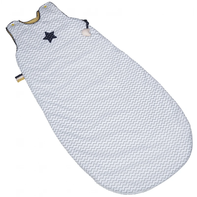 La gigoteuse ouatinée réglable 4-24 mois Hello par Sauthon est idéale pour garder votre tout-petit bien au chaud pendant son sommeil sans jamais se découvrir. Sans manche, elle permet de laisser circuler l’air tout en apportant douceur et chaleur à l’enfant. L’ouverture par bouton pression sur les épaules ainsi que la fermeture éclair sur le côté de la gigoteuse facilitent l’installation de bébé. L’utilisation de couverture ou de couette étant déconseillée jusqu’à l’âge de 18 mois, la gigoteuse est la solution idéale. Dans les tons de bleu marine et blanc, la gigoteuse 4-24mois Hello est trop craquante avec ses motifs grapiques et sa petite étoile bleue ! De plus, les boutons pressions situés au dos de la gigoteuse permettent d’en régler la longueur pour une utilisation jusqu’aux 2ans de bébé ! Un beau cadeau tout doux très pratique pour passer un hiver bien au chaud !