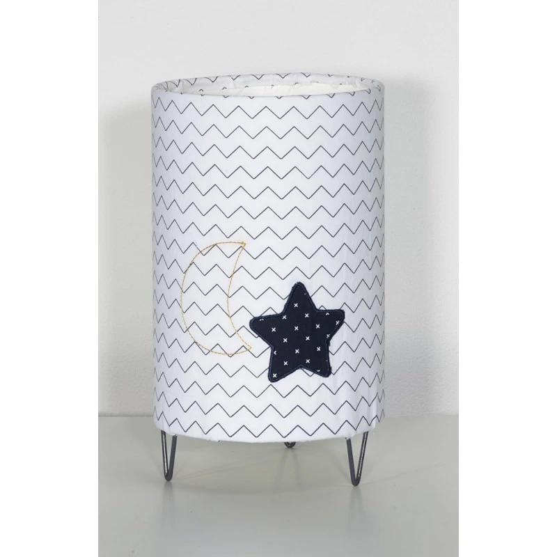 Dans les tons de blanc et bleu marine, une belle étoile bleue est rodée sur l’abat-jour sur 3 pieds en métal. Un élément qui viendra parfaire la décoration de la chambre. Idée cadeau utile et originale !