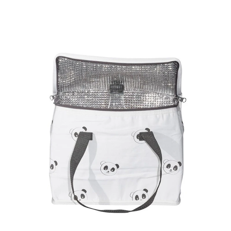 Le Lunch bag Chao Chao de sauthon est un adorable sac isotherme pour transporter le repas ou le goûter de votre bout de chou. Pratique, vous pourrez y ranger vos petits pots ainsi que l’assiette ou le bol de votre tout petit. De plus, son intérieur imperméable se nettoie facilement et rapidement avec seulement une éponge. Dans les tons de noir et blanc, il est recouvert d’une multitude de petits pandas ! Indispensable lors de vos sorties, n’oubliez pas de l’inscrire sur votre liste de naissance !