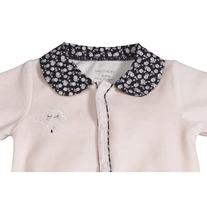 Un beau pyjama en velours pour votre tout petit, assorti au thème Miss Fleur de Lune par Sauthon pour envelopper bébé dans un cocon de douceur et de chaleur. Pratique, le pyjama Miss Fleur de Lune présente une ouverture sur l’entrejambe pour faciliter le change et éviter de refroidir bébé ainsi qu’une ouverture devant pour qu’habiller bébé soit le plus simple possible.