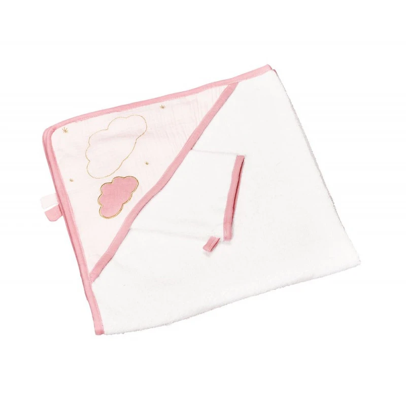 Voici la belle sortie de bain assortie à la collection Lily par Sauthon, en éponge toute douce, elle comblera bébé et l’enveloppera dans un cocon de douceur et de chaleur dès la sortie de son bain. Dans les tons de blanc et de rose, il est décoré d’un joli petit nuage ! Petit plus : elle est vendu dans une magnifique boite cadeau ! Indispensable dès la maternité, n’oubliez pas de la mettre dans votre valise ! C’est une idée cadeau très jolie et très pratique !