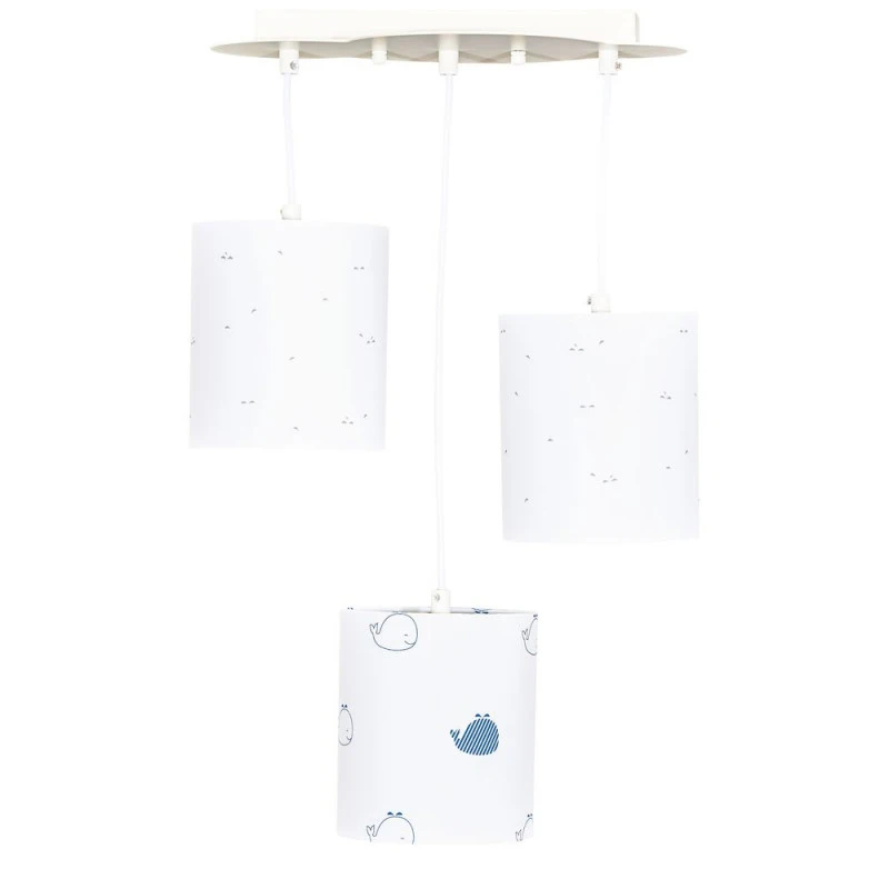Sauthon a dĂ©veloppĂ© une gamme complète de luminaires pour Ă©clairer la chambre de bĂ©bĂ© ! Dans les tons de blanc et bleu avec des motifs graphiques et de jolies petites baleines, les abat-jours de la suspension trio Blue baleine sont rĂ©glables en hauteur pour laisser libre cours Ă votre crĂ©ativitĂ©. FabriquĂ©s en coton, ces abat-jours vous permettront d’adoucir la lumière de la chambre afin de crĂ©er une atmosphère cosy et chaleureuse dans la chambre de bĂ©bĂ© et Ă©viter de le surprendre avec une luminositĂ© trop forte. De plus, le plafonnier en forme de nuage habillera joliment le plafond de manière ludique et enfantine !