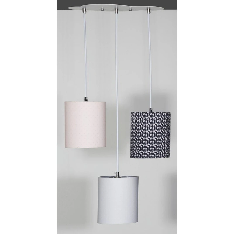 Sauthon a développé une gamme complète de luminaires pour éclairer la chambre de bébé ! Dans les tons de rose et bleu marine avec des motifs graphiques, les abat-jours de la suspension trio Miss Fleur de Lune sont réglables en hauteur pour laisser libre cours à votre créativité. Fabriqués en coton, ces abat-jours vous permettront d’adoucir la lumière de la chambre afin de créer une atmosphère cosy et chaleureuse dans la chambre de bébé et éviter de le surprendre avec une luminosité trop forte. De plus, le plafonnier en forme de nuage habillera joliment le plafond de manière ludique et enfantine !