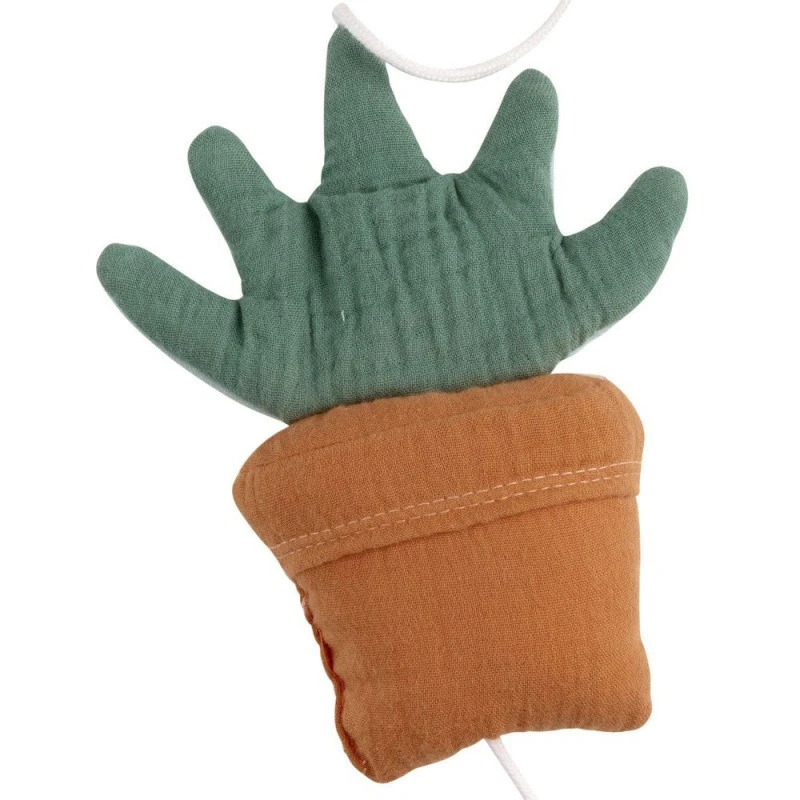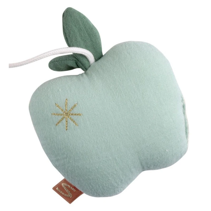 La suspension Botanica de Sauthon, dans les tons de vert et orangé, est composé d’une pomme verte, d’un joli pot de fleur et d’une poire imprimée. Placé au-dessus du lit de votre enfant, il veillera sur son sommeil !