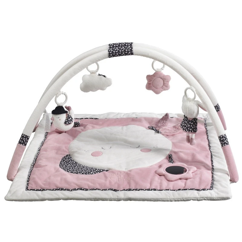 Le tapis d’Éveil assorti au thème Miss Fleur de Lune par Sauthon est parfaitement adapté pour stimuler les sens de l’enfant grâce aux différentes couleurs et jouets qui le constituent. Tous les jeux d’éveil peuvent être détachés des arches et utilisés comme peluches lorsque bébé aura grandi. Installé confortablement, sur son tapis molletonné, bébé pourra jouer et s’éveiller avec de multiples activités : des miroirs, des hochets, des peluches, etc… Dans les tons de rose, blanc et marine, on y retrouve tous les personnages du thème : Miss Fleur de Lune la jolie lapine, un beau nuage, l’oiseau rigolo avec son beau chapeau, suspendus à deux arceaux détachables. Et, sur le tapis, mademoiselle la lune blanche avec son ombre fleurie et ses petites plumes…. Vous pourrez par la suite utiliser le tapis d’éveil sans les arches comme tapis pour amortir les chutes du quatre patte ou des premiers pas… Super idée cadeau !