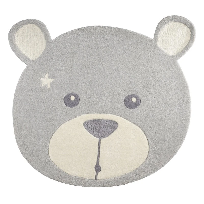 Ce beau tapis de chambre arrondi tufté main assorti à la collection Céleste par Sauthon est idéal pour ajouter une touche de fantaisie à la chambre de bébé, que ce soit pour s’amuser dessus ou tout simplement apporter une touche de déco à la chambre. Dans les tons de gris, beige et blanc, on y retrouve un la jolie bouille de l’ours Céleste avec une jolie petite étoile sur la tête. Un tapis de chambre aux couleurs douces et modernes qui s’intègre parfaitement à la décoration de la chambre et au reste de la collection Timouki. Un magnifique cadeau qui fera des heureux !