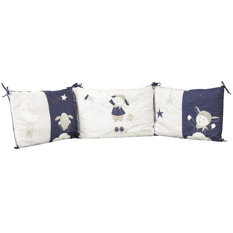 Sauthon le sait bien, le tour de lit est un élément capital du lit de bébé et donc un incontournable des listes de naissance. Ce modèle Merlin moelleux et douillet protégera la tête de bébé des barreaux de son lit. Ses couleurs et ses illustrations mettront bébé dans les meilleures conditions possibles pour passer de merveilleuses nuits pleines de beaux rêves. Merlin le mouton rêveur veillera sur le sommeil de votre enfant ! Ce tour de lit Sauthon est également pratique puisqu’il est déhoussable et qu’il possède un système d’attache par liens de serrage en tissus. Vous pourrez donc le nettoyer, l’installer et désinstaller très simplement. Pas d’hésitation possible !