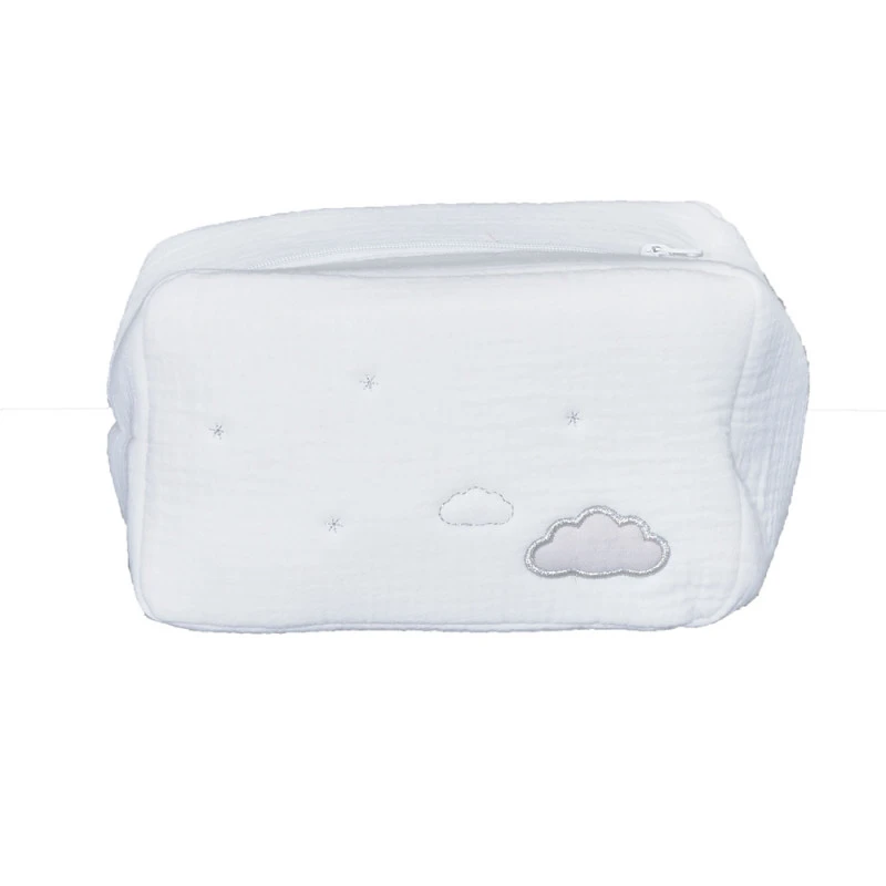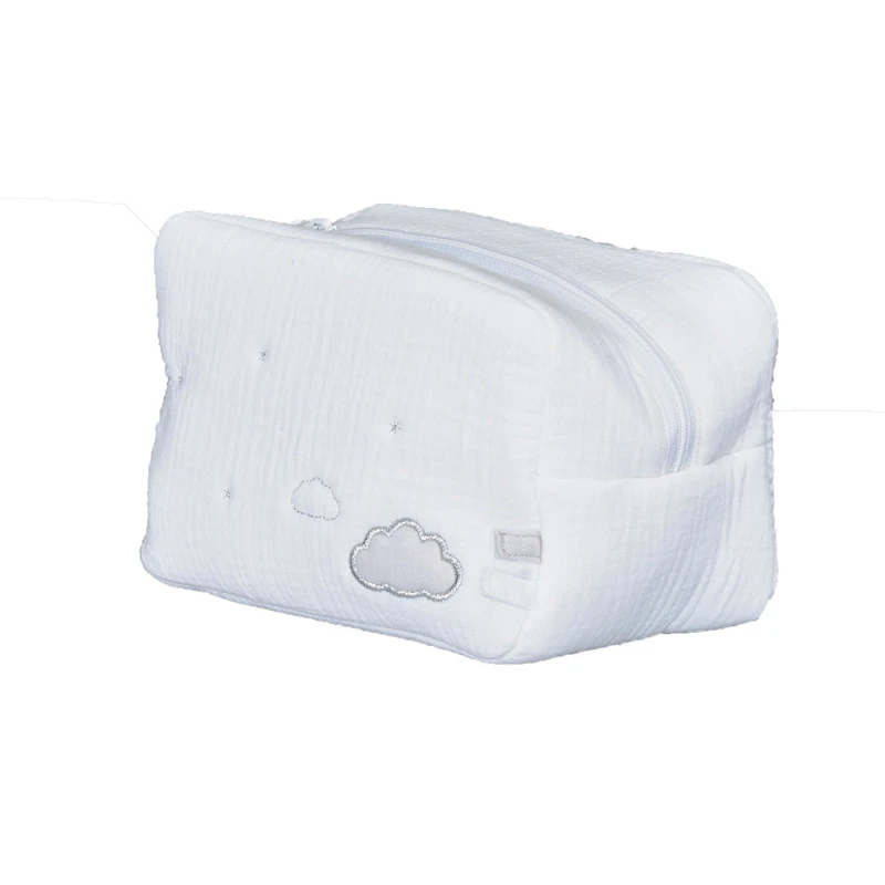 Sauthon vous prĂ©sente cette mignonne petite trousse de toilette inspirĂ©e du thème Lily grey. Vous pourrez y ranger le petit nĂ©cessaire de change de bĂ©bĂ© lorsque vous ne souhaitez pas sortir trop chargĂ© ou l’utiliser pour ranger les produits de toilettes lorsque vous partez en voyage pour les avoir toujours Ă portĂ©e de main. IdĂ©e originale et pratique pour la liste de naissance. Dans les tons de gris et dĂ©corĂ©e d’un joli petit nuage, cette adorable trousse de toilette Sauthon en mousseline de coton gaufrĂ©e pourra vous ĂŞtre utile dans bien des circonstances ! Son tissu intĂ©rieur est dĂ©perlant et se nettoie facilement d’un coup d’Ă©ponge.Â