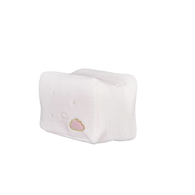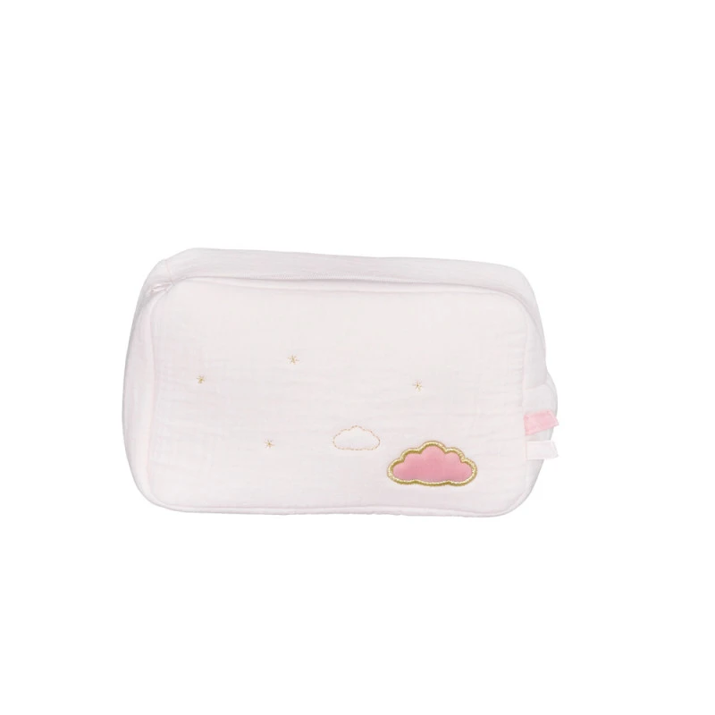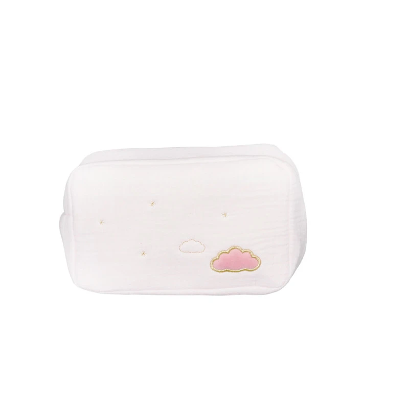 Sauthon vous présente cette mignonne petite trousse de toilette inspirée du thème Lily poudrée. Vous pourrez y ranger le petit nécessaire de change de bébé lorsque vous ne souhaitez pas sortir trop chargé ou l’utiliser pour ranger les produits de toilettes lorsque vous partez en voyage pour les avoir toujours à portée de main. Idée originale et pratique pour la liste de naissance. Dans les tons de rose poudré et décorée d’un joli petit nuage, cette adorable trousse de toilette Sauthon en mousseline de coton gaufrée pourra vous être utile dans bien des circonstances ! Son tissu intérieur est déperlant et se nettoie facilement d’un coup d’éponge.
